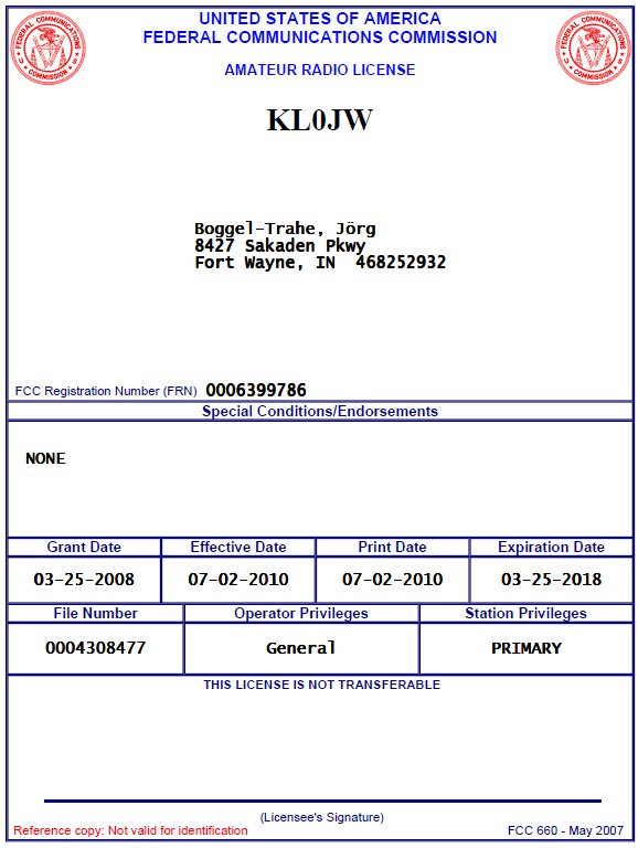 Zu dem "Warum" einer U.S.-Lizenz ist schon viel geschrieben worden (u.a. hier). Dazu hänge ich weiter unten noch ein paar lesenswerte Artikel an. Die einzige Hürde ist, dass die Federal Communications Commission die Post ausschließlich an eine U.S.-amerikanische Postanschrift zustellt. Zu deutsch: man muss über eine Adresse in U.S.A. verfügen, wo man zumindest Post empfangen kann und diese einem dann weitergeleitet wird. Dabei ist es unerheblich, ob es sich um eine Adresse auf Guam im Pazifik, in Alaska oder auf den Amerikanischen Jungferninseln handelt. Es kann auch eine Postfachanschrift sein. Die Adresse muss sich im amerikanischen Hoheitsgebiet befinden. Wer partout niemanden kennt, der ihm seine Adresse "leihweise" zur Verfügung stellt, der kann auch kommerzielle Dienste hierfür in Anspruch nehmen, die allerdings ihren Preis haben.